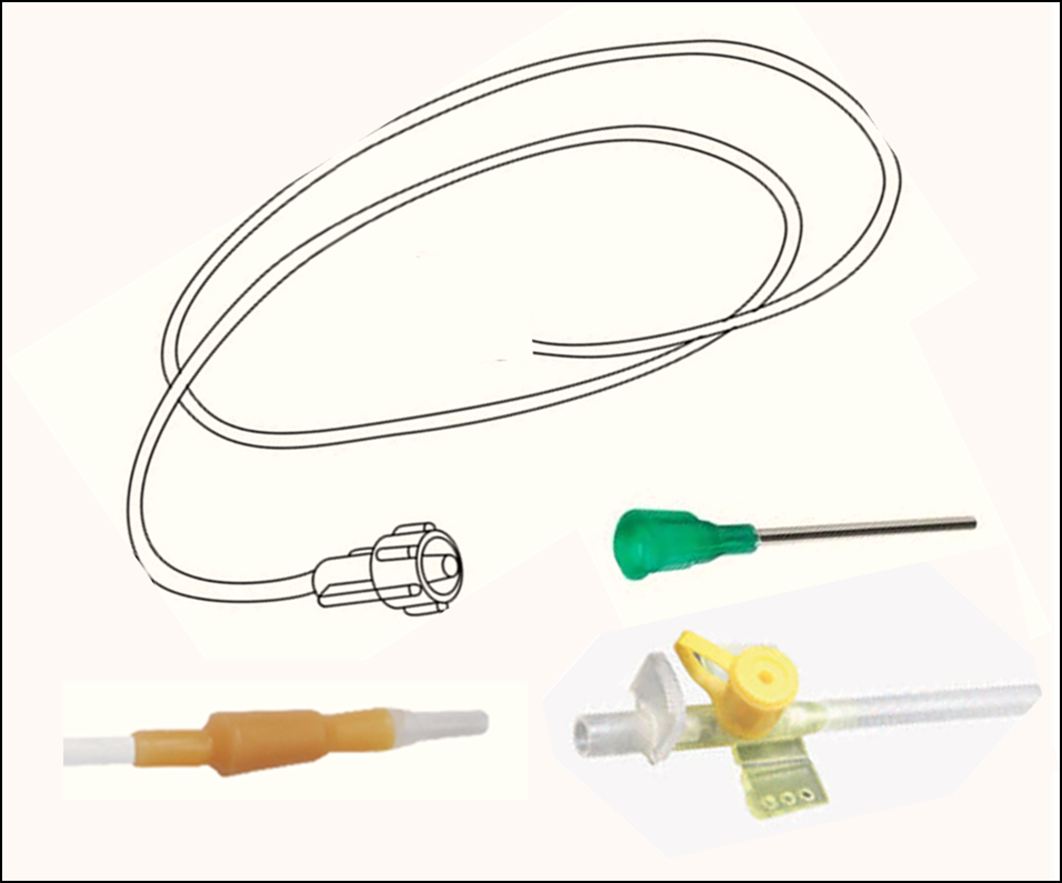 Sambungannya berbentuk “Luer lock” atau biasa. Sambungan Luer lock mempunyai bentuk dimana hujung tiub saliran merupakan penyambung “jantan” dan pangkal kanula berbentuk “betina”. Terdapat pengadang di hujung tube supaya ia kekal steril.