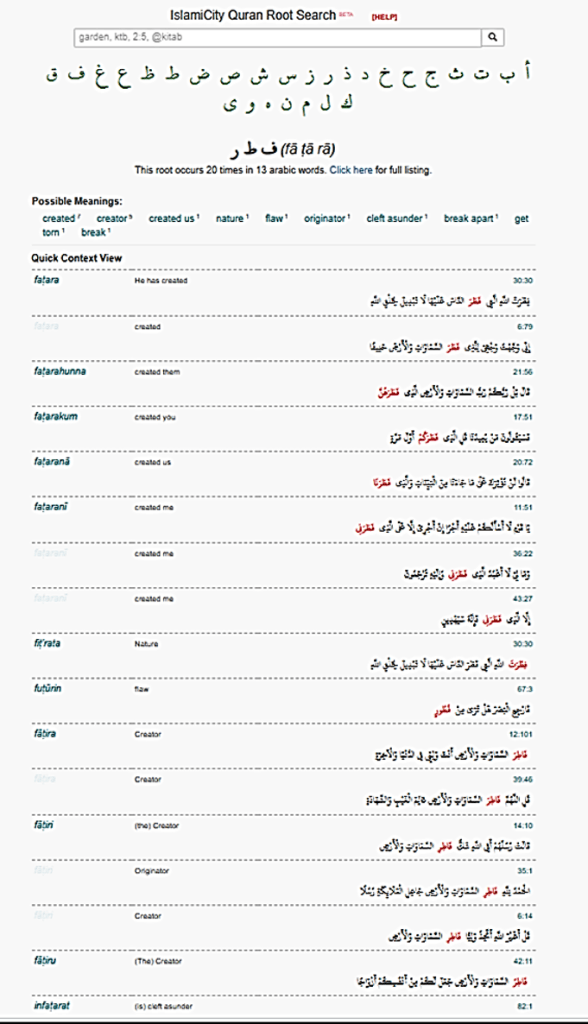 IslamCity List of Verses Containing Words from Same Root Letters